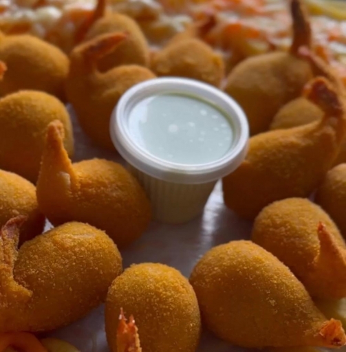 1Mix Linha Premium Fritos- Degustação Mix dos nossos salgados linha premium, 5 unidades de camafeu de camarão com catupiry, 5 unidades de bolinho de bacalhau, 5 unidades de croquete de feijoada.